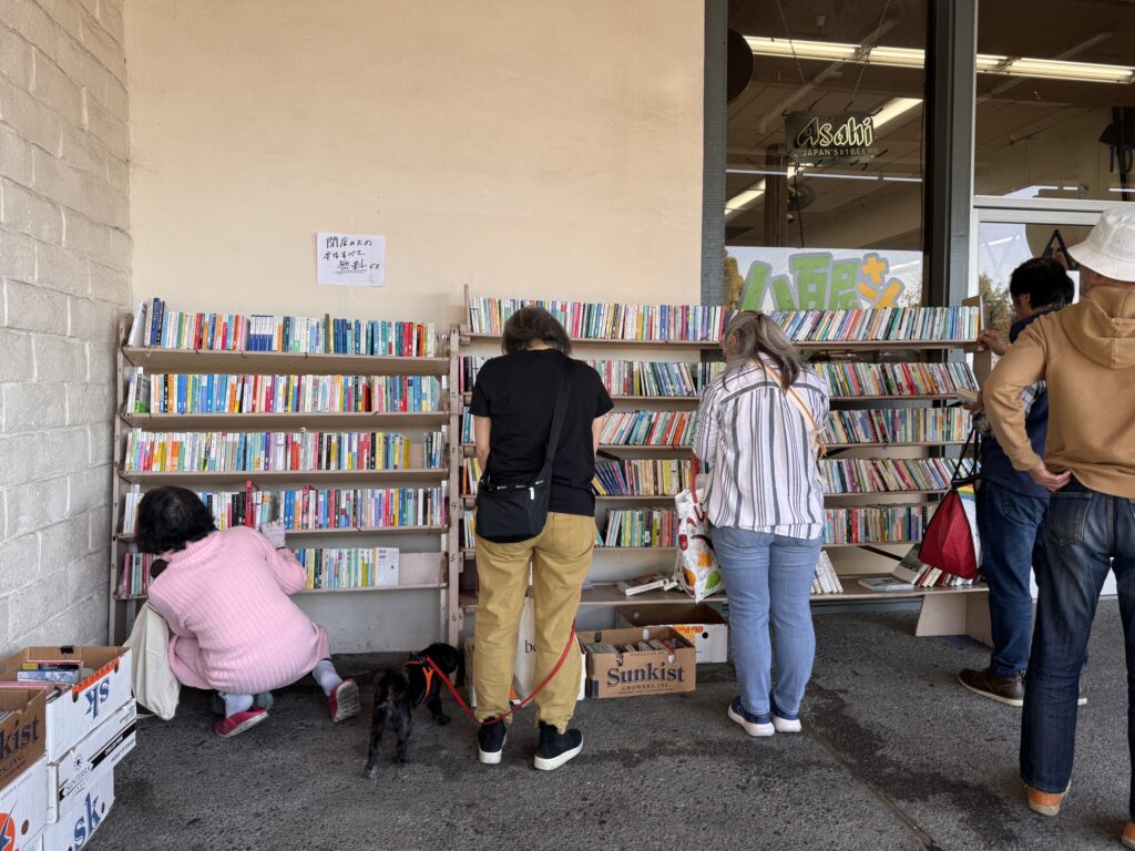 店の前で本を抱えた人たちは、Yさんをはじめ、長年関わってきたボランティアスタッフの方々に感謝を伝えながら、「ここで本を買って孫にプレゼントしたねぇ」「さみしくなるねぇ」「おつかれさまでした」と思い出話に花を咲かせていました。そのあたたかい光景に、言葉にできない感動が胸に広がりました。