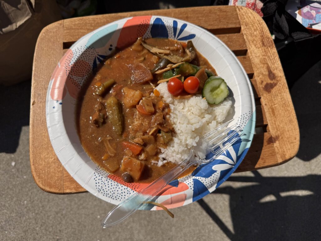 私の突然の取材のお願いにも、Yさんは快く応えてくださり、さらに昼食には古本市スタッフ恒例のカレーライスまでご馳走になってしまいました。