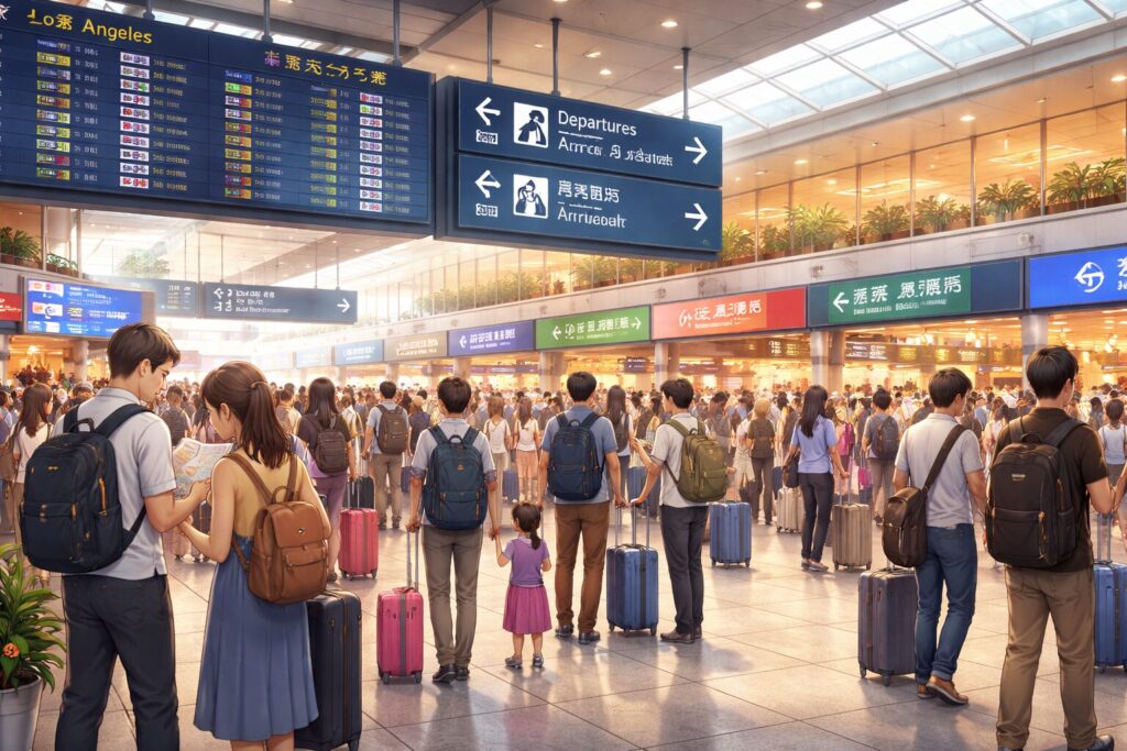 2月は航空券が比較的安い時期です。かつては閑散としていた空港も、いまやインバウンドの影響で大混雑。アジア系の顔立ちでも、耳に入るのは日本語ではない言葉。働く方々の抑揚からも多様な背景が感じられます。